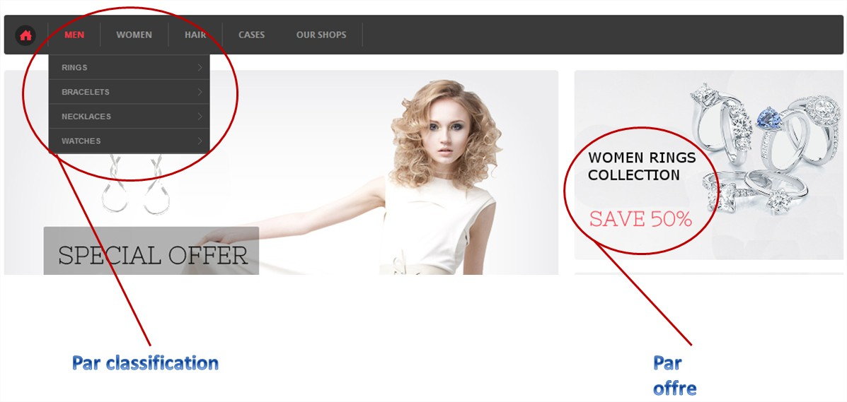 Avec le groupe, nous avons choisit le thème du luxe et des bijous, mais l'essentiel a été de comprendre le fonctionnement de magento et comment l'utiliser.