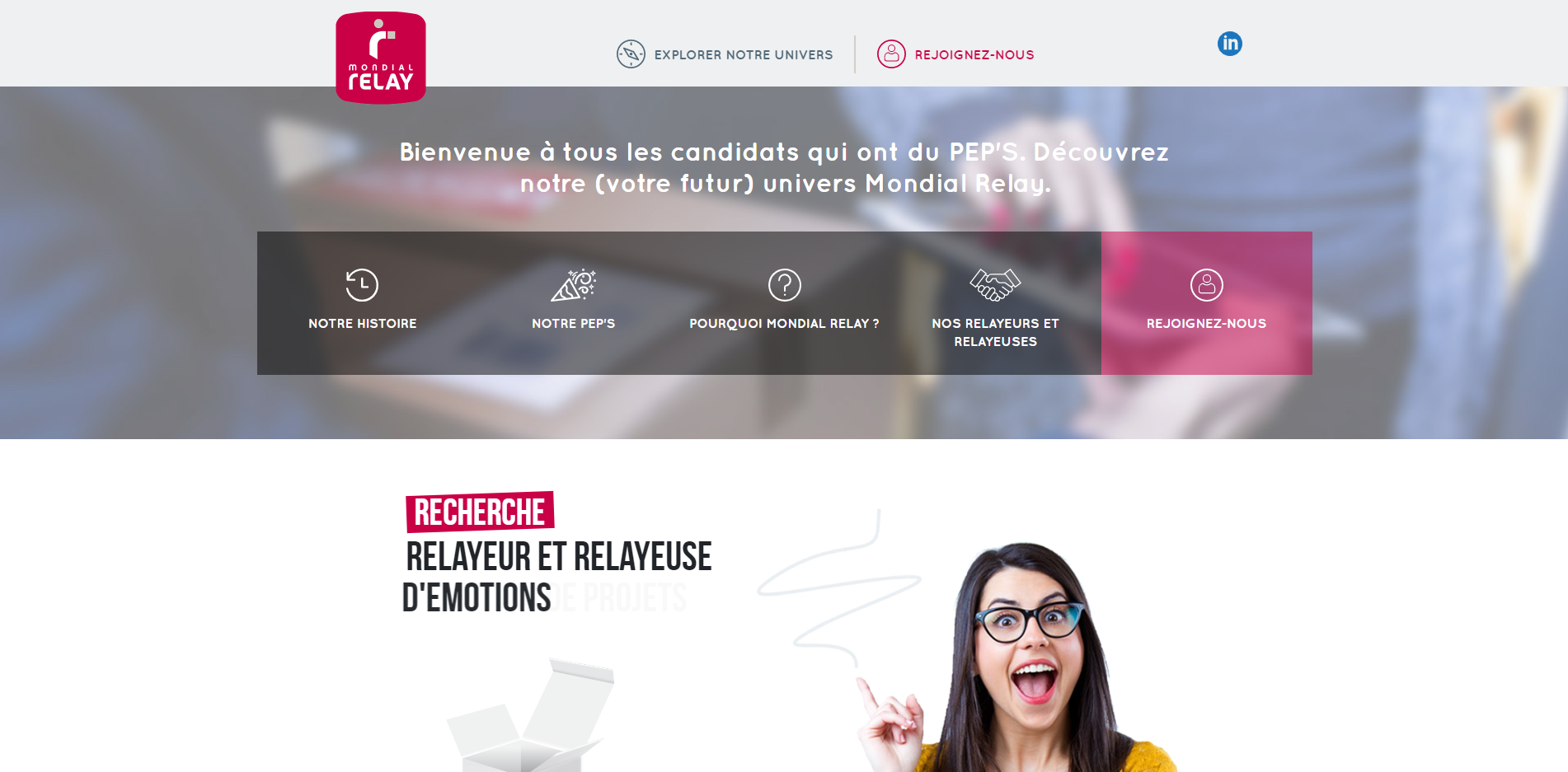 Ce site présente les différentes activités possible chez Mondial Relay et permet de postuler.