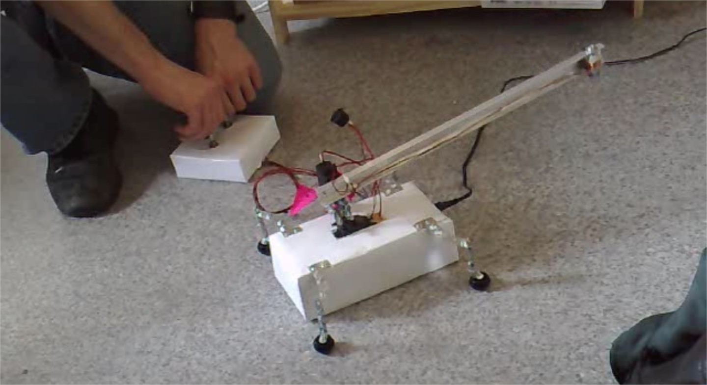Le projet comportait quelques contraintes techniques: utilisé un micro-processeur spécifique, n'utiliser que deux servomoteurs et uniquement deux servomoteurs pour la motorisation et la direction de l'engin et n'avoir que trois appuis au sol.