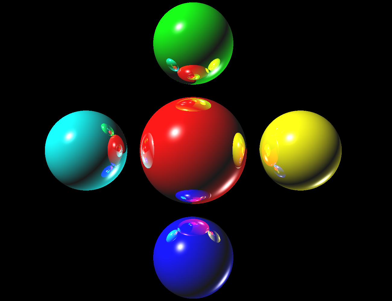 Avec le binôme, nous avons été capable de modéliser et afficher des boules de différentes couleurs avec leurs reflets.