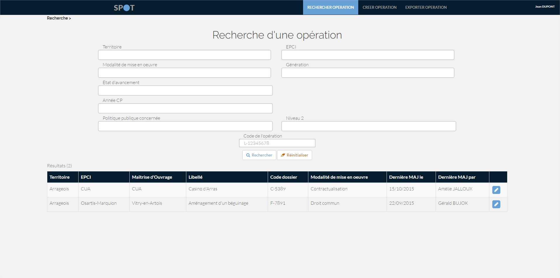 - Prototypage de l'application de Service Public des Opérations Territoriales (SPOT).